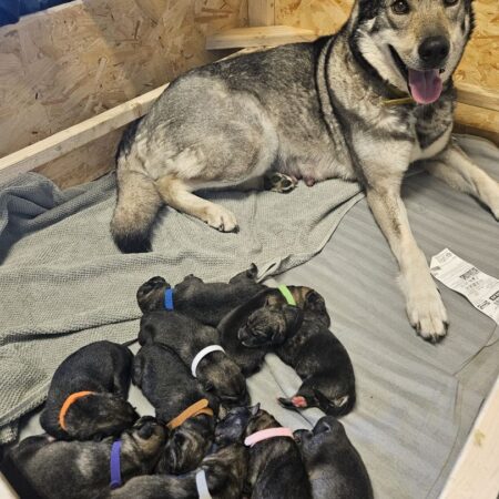 Tikar finns kvar att tinga. 23/4-2026, blev en stor kull på 11 valpar, varav 9 tikar och 2 hanar.
