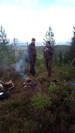 Vägvisare Tony, hundförare Konrad & domare Stefan lyssnar på Storms skall 500 meter bort.12:31 Skottillfälle, stöt. ko
